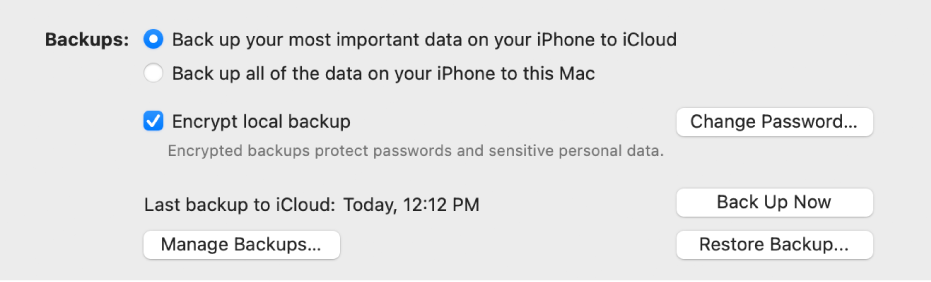 Enable Encrypt local backup if youd like to make a full encrypted backup of iPhone to Mac.